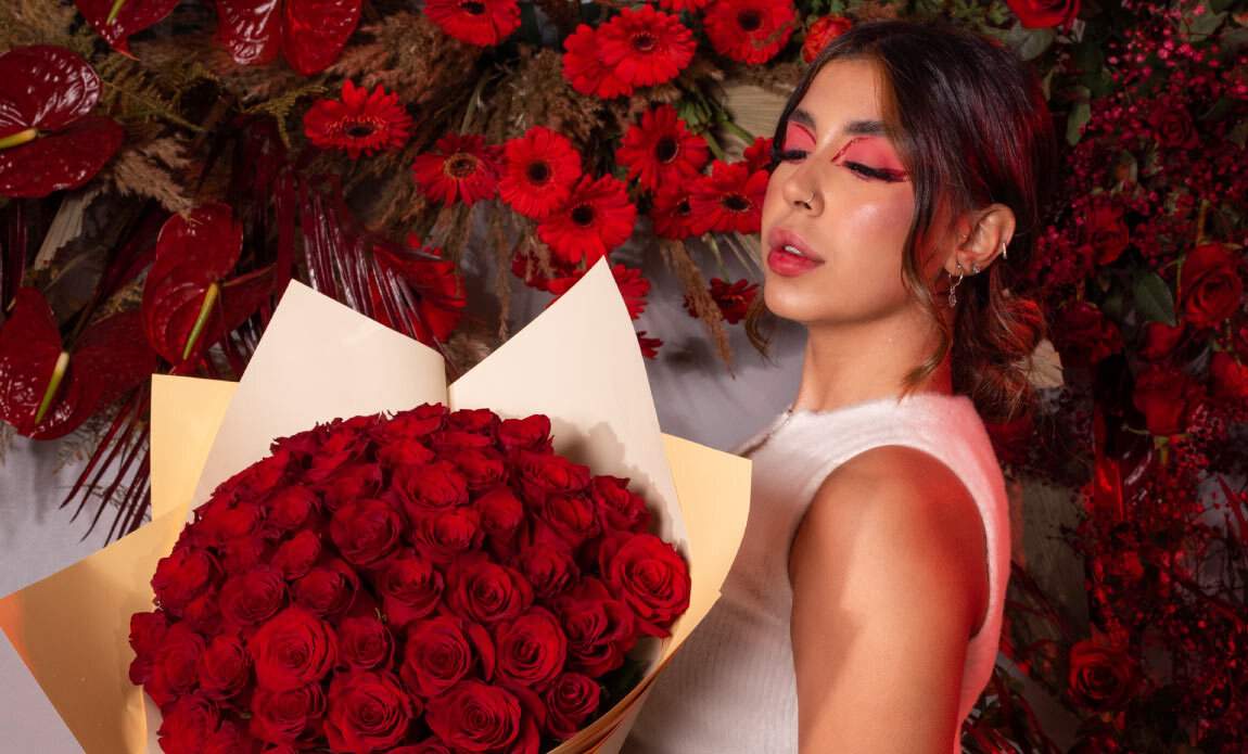 لا تتردد وقدم لنصفك الآخر بوكيه ورد طبيعي أحمر لعيد الحب من سالي حلمي.