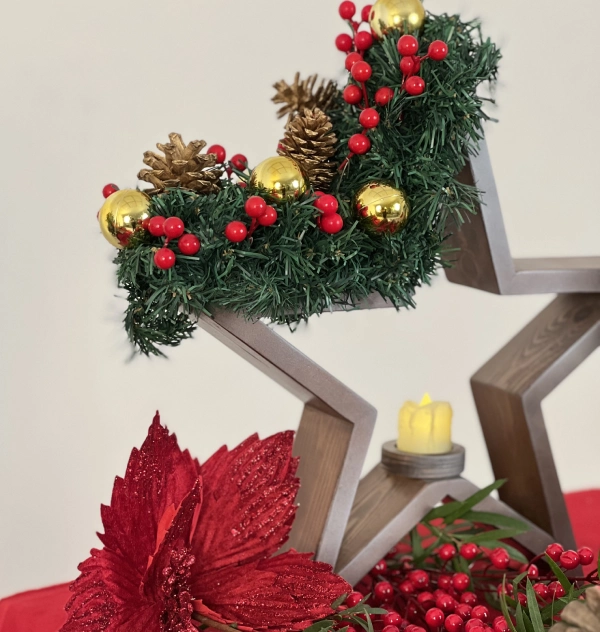 Christms is the time for a red poinsettia; get it carefully assembled.