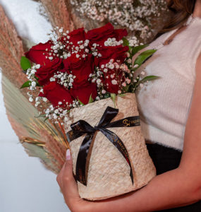 A breathtaking harmony of passionate red roses and delicate white baby’s breath symbolizes love, purity, and everlasting devotion.