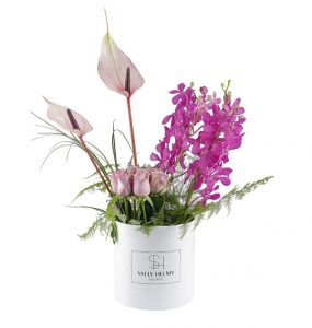 Dark Pink Mokara, Anthurium and Purple Roses.