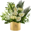 قدم لمن تحب تجربة استثنائية مليئة بالأحاس والمشاعر التي تداعب جميع الحواس مع بوكيه Blissful الغني بالورود البيضاء الطبيعية، التي ترمز إلى الحب الأبدي والنقاء ومع لمسة جميلة من الورود الخضراء لمنح الأحساس بالطبيعة، كل ذلك مُقدَّم في صندوق ذهبي أنيق.
