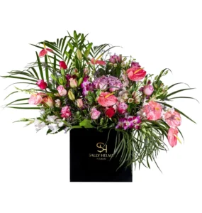 بوكيه الورد “Botanical” من سالي حلمي يأتي في صندوق أسود أنيق، يحمل ألوان مبهجة من الورود البنفسجيه والورديه والحمراء، مع لمسات من الأوراق الخضراء ليضفي لمسة فرح تسعد بها جميع حواس ومشاعر من تحب مع إضافة لمسة خاصة علي كل مناسبة عزيزة.