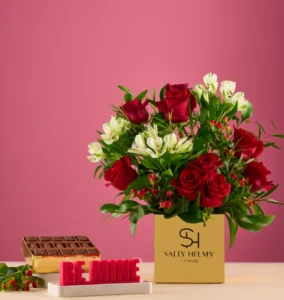 بوكيه ورد Brilliance ، إنها أكثر من مجرد هدية، إنها احتفال بعيد الحب يلامس مشاعر والحواس الخمس لمن تحب، قدم من سالي حلمي تلك البوكيه لمن تحب المكون من أجود الورود الحمراء متناغمة مع الورد البيضا التي ترمز للنقاء مع لمسة مميزة من الورود الخضراء التي تمنحك الأحساس بالطبيعية والأنتعاش كلا متناسق سويا في بوكس أنيق بجانبه أجود أنواع الشوكولاته مع شمعة أنيقة تضيف لمسة دفئ للبوكيه.