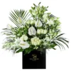 Encased in a sleek black box, this bouquet embodies sophistication and simplicity, enhancing the sensory experience with its visual appeal and fragrant flowers.