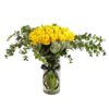 Complemented by eucalyptus, celebrated for its calming scent and representation of renewal, this arrangement reflects a spirit of positivity and cheer.