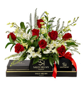 Liaison Flowers: A Symphony of Love for All Senses This exquisite arrangement of passionate red roses and graceful white orchids embodies love and elegance.