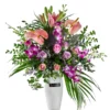 The Nefertiti Bouquet from Sally Helmy is a sensory feast with its vibrant colors and chic off-white handcrafted fiberglass vase.