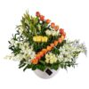 The “Praise” roses bouquet represents a thoughtful collection of orange, white, and yellow blooms, each selected for its meaningful symbolism.