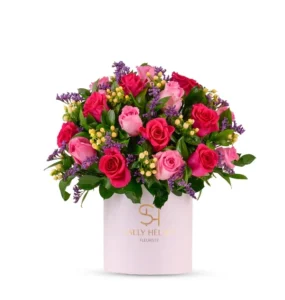 Celebrate Mother’s Day with a breathtaking “Raise”bouquet that speaks of love and gratitude. Featuring Fushia roses for admiration, soft Pink blooms for appreciation, Limonium for elegance, and Hypericum for warmth—this stunning arrangement in a chic White box is the perfect way to show Mom just how much she means to you.