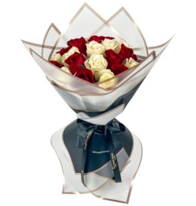 إذ تتمازج الورود الحمراء، رمز العشق والعاطفة، مع الورود البيضاء، رمز النقاء والسعادة.