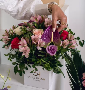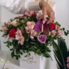 Indulge your senses with this breathtaking floral arrangement, a masterpiece of nature’s beauty, harmoniously vibrant hues of pink, purple, and red dance, creating a mesmerizing spectacle.