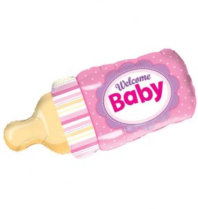 Baby Foil Balloon – Welcome Baby Bottle Pink – 39-inch Personalized,